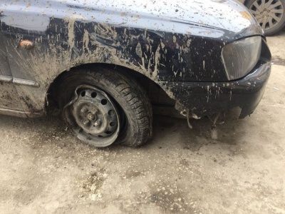Транспортное средство с повреждениями правого переднего колеса было найдено на автомобильной стоянке около одного из баров города.