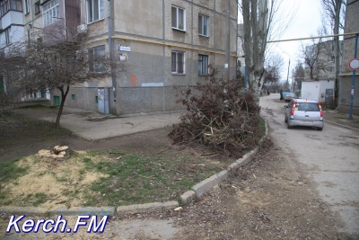 В Керчи в районе Аршинцево пилят аварийные деревья. Как передает корреспондент Керчь.ФМ, после обрезки стволы и ветки увозят.