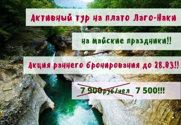 28.04 - 01.05 Активный тур в Адыгею, на плато Лаго-Наки 7900 руб / 7500 руб.