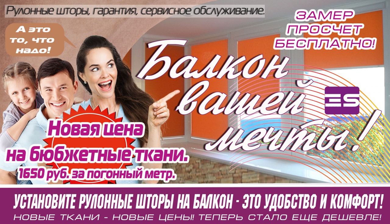 Воспользуйтесь новой ценой на рулонные шторы 1650 руб. погонный метр,
