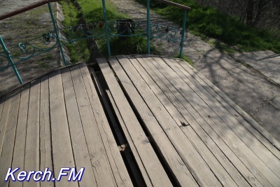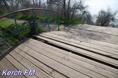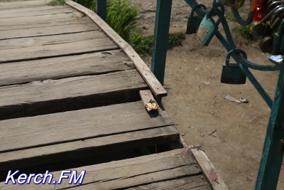 В Керчи отремонтированный Молодежный парк в Аршинцево торжественно открыли перед новым годом. Но работы до одной из главных достопримечательностей парка так и не дошли - разваливается мостик у моря, - передает Керчь.ФМ.