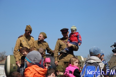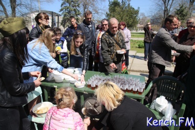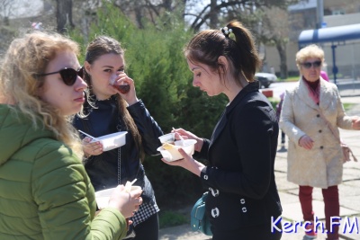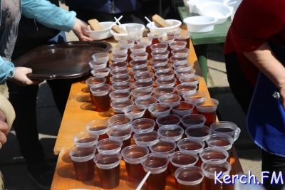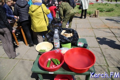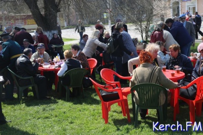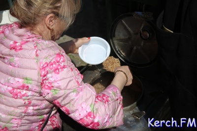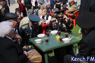 Для ветеранов и всех присутствующих организовали солдатский привал, где керчан кормили кашей и угощали чаем.