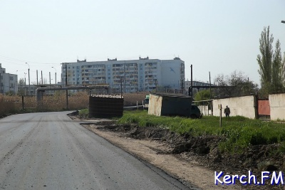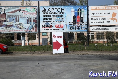 В Керчи около Ворошиловского кольца появилась табличка «На паром». Рядом с ней стоит мужчина, который направляет грузовой транспорт в сторону Цементной Слободки.