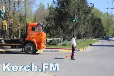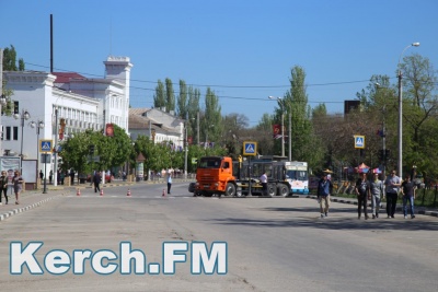 В Керчи на время прохождения колонны первомайской демонстрации перекрыли грузовиками все въезды. Автомобили, которые находились на стоянке около «Фуршета», увозил эвакуатор. Также переулок Кооперативный закрыли бетонными блоками.