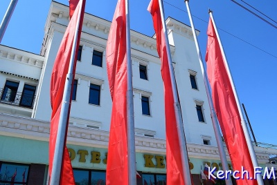 В прошлом году на гостинице Керчь повесили копию Знамени Победы.