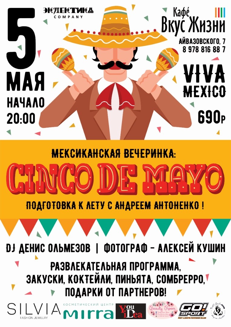 05.05 празднуется национальный праздник в Мексике - Cinco de Mayo (Синко де Майо). В этот день многие мексиканцы по всему миру отмечают праздник своего родства и исторического наследия. А люди с другим происхождением имеют возможность отдать дань мексиканской культуре. Вот и мы не стали исключением и с огромным удовольствие подготовили для Вас тематический праздник в духе жаркой и знойной Мексики!