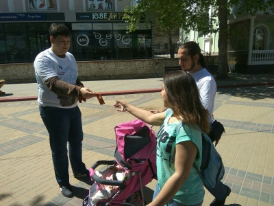 Участники движения проводят своё мероприятие в рамках всероссийской акции «Георгиевская ленточка».