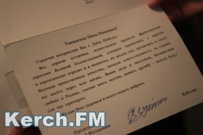 Всю неделю школьники и студенты Керченских образовательных учреждений поздравляли ветеранов по месту проживания. Ребята из школы № 4, первоклашки из школы № 15, «Команда добрых дел» из гимназии №1, студенты Медицинского колледжа им. Г.К.Петровой, воспитанники ГБОУ РК "Керченский учебно-воспитательный комплекс-интернат-лицей искусств" с удовольствием посетили ветеранов на дому, проживающих в Центральном, Аршинцевском и Войковском районах. Тематическую страничку «О победах фронтовых» открыли в отделениях дневного пребывания № 1 и социально-реабилитационном.