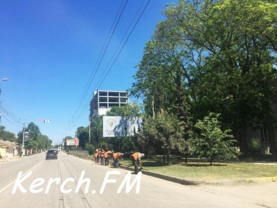 В Керчи 12 мая на улице Свердлова рабочие убирали землю от бордюров на обочине. Как передает корреспондент Керчь.ФМ, собранную землю скидывали на клумбы под деревья.