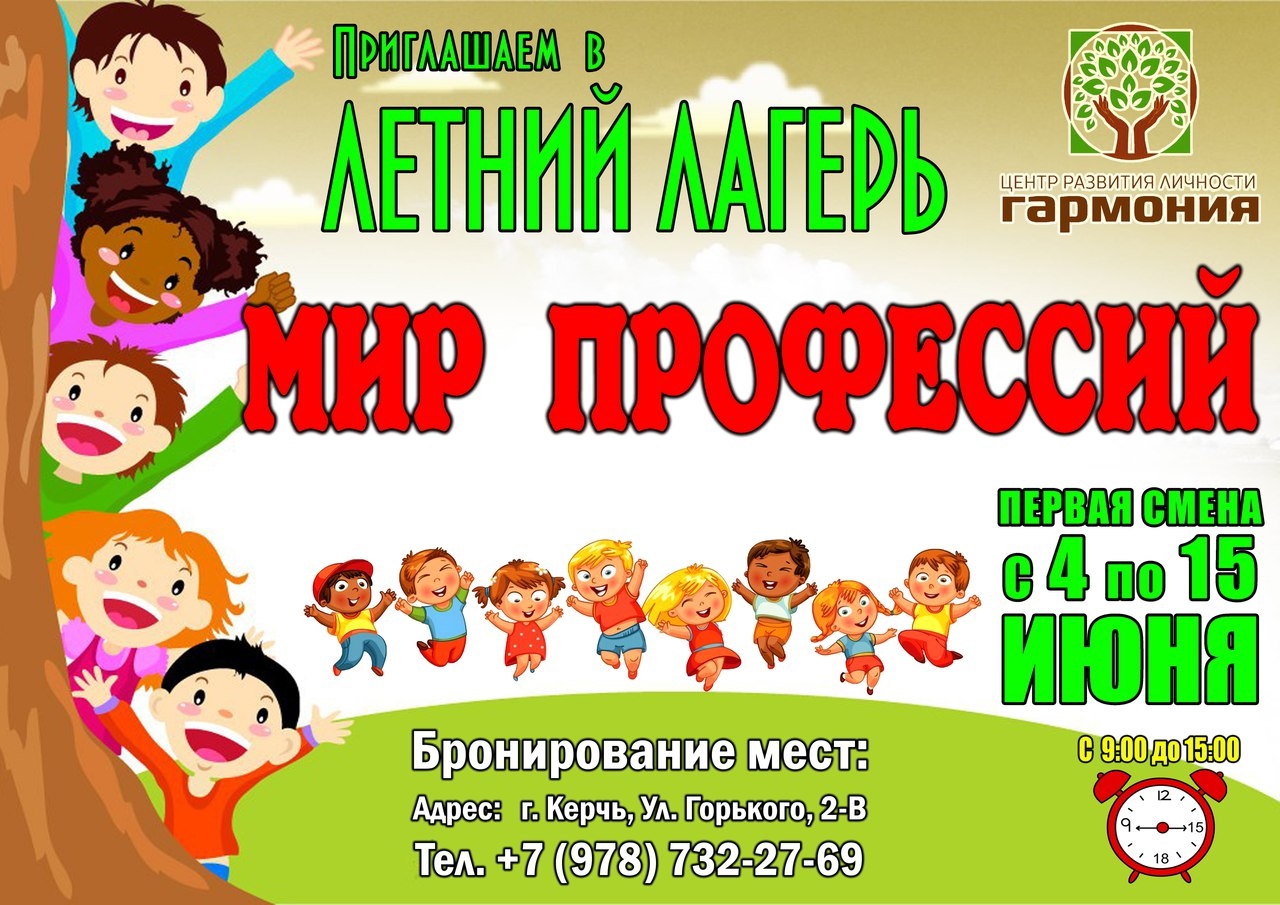 Время работы лагеря: с 9.00-15.00 (или с 8:30 до17.00 по согласованию)