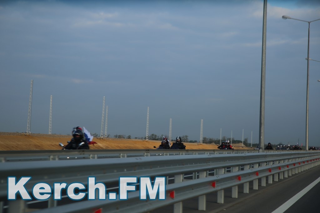 Колонна со стороны Тамани выдвинулась несколько раньше. В Керчи движение началось около 5.40. Машины и мотоциклы проехали по мосту, автоподходам, развернулись и поехали обратно. Вся дорога - туда и обратно заняла около 50 минут. Также ехали и автобусы, и велосипедисты