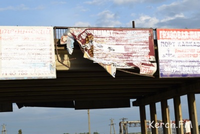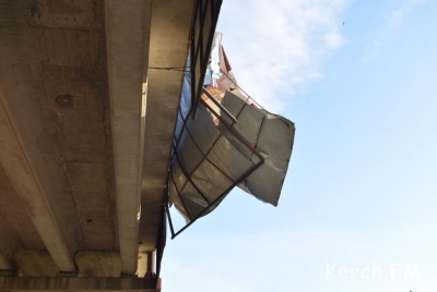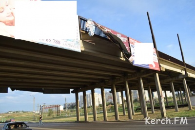 В Керчи на мосту, который находится на Буденного, грузовик погнул два билборда. Они свисают над дорогой. Один из рекламных щитов находится в аварийном состоянии и может упасть на дорогу, - передает Керчь.ФМ