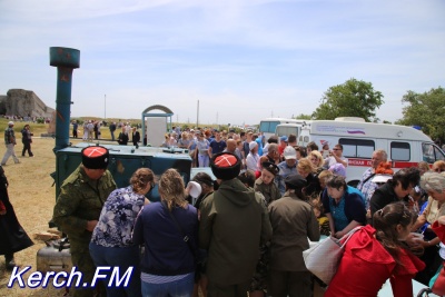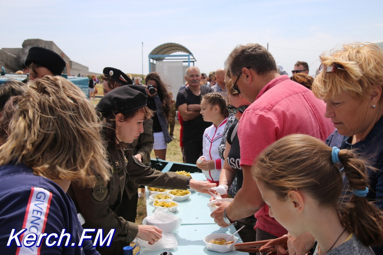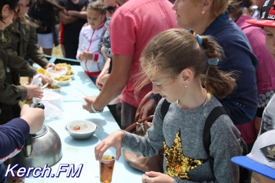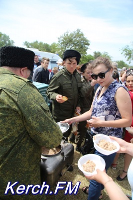 В Керчи после театрализованного представления в Аджимушкае присутствующих пригласили отведать полевую кухню. Как передает корреспондент Керчь.ФМ, кашу керчанам раздавали казаки, они также давали чай и помидоры.