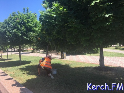 В Керчи 1 июня коммунальщики убирают центр города. Рабочие косят траву, белят деревья и подстригают кусты, - передает Керчь.ФМ