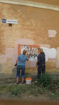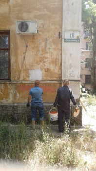 На фасадах зданий, находящихся в управлении ГУП РК КП «Аршинцево» были нанесены надписи.