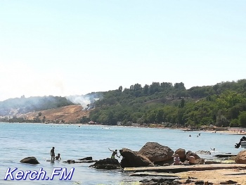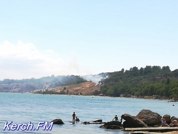 Вдоль побережья в Аршинцево горит трава на склоне