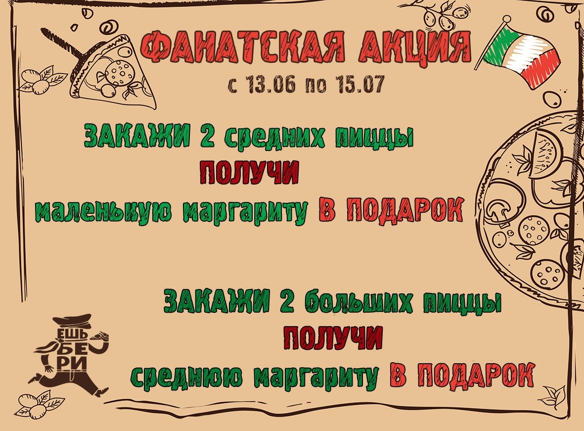 ПРОВЕДИТЕ ЧЕМПИОНАТ МИРА ПО ФУТБОЛУ С СОЧНОЙ И АРОМАТНОЙ ПИЦЦЕЙ ОТ «ЕШЬБЕРИ»