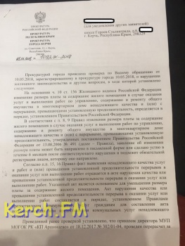 Керчане неоднократно обращались в прокуратуру. Последняя перенаправила одно из обращений в Жилинспекцию, по крайней мере такой ответ получили пенсионеры из прокуратуры. А в последнем ответе прокуратура дала ответ, что в случае, если керчане недовольны работой управляющей компании, то они вправе составлять соответствующие акты.
