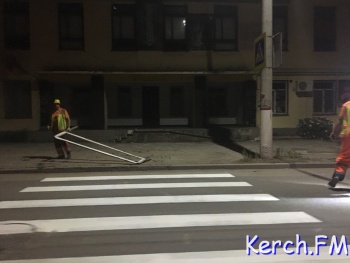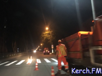 Ночью в Керчи нанесли пешеходные переходы на Вокзальном шоссе