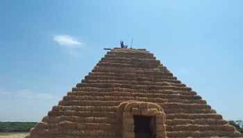 Необычный парк соломенных фигур Пономарев создал на своей бахче около 5 лет назад. Мост высотой четыре метра от земли - не единственный новый объект, незадолго до него на ферме открылась 22-метровая пирамида. В скором времени инсталляцию дополнит соломенный зенитный комплекс С-500.