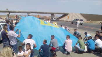 В конце мероприятия участники развернули 60 метровое полотнище крымскотатарского флага, которое привезли с собой керчане.