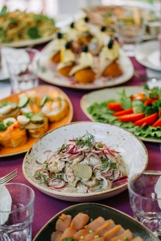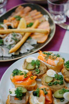С момента открытия кафе «Вкус Жизни» разделило с Вами множество праздников и мероприятий. Опытная команда поможет грамотно составить меню с учетом Ваших предпочтений и количества приглашенных гостей. К вниманию заказчика будет представлено банкетное предложение с разнообразными блюдами на любой вкус. Канапе, различные закуски, горячие блюда в виде ассорти, авторские праздничные торты. Ваши гости будут в восторге!
