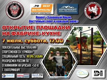 «Площадка построена в рамках совместного проекта СК "ГРИФОН" и Компании "КЕРЧЬРЕМОНТ" - "Здоровый Крым. Доступный спорт в каждый двор.", при поддержке интернет-гипермаркета "РФ.ВЕЗУ МАТЕРИАЛЫ" и РОО "Дружба народов Крыма". Торжественное открытие пройдет при содействии КРСПОО "ВОЗРОЖДЕНИЕ" и студии звукозаписи "DI Music"», - заключили организаторы.