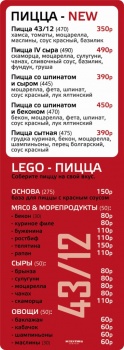 Вы можете выбрать из предложенных вариантов или собрать свою уникальную пиццу благодаря услуге LEGO-PIZZA.