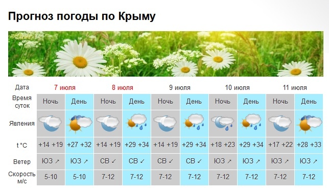 Прогноз погоды по ЮБК: