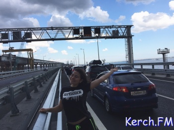 На Крымском мосту 16 июля примерно в 11:00 часов образовалась пробка. Предположение водителей о ДТП не подтвердилось. Как оказалась, на мосту сегодня снимают клип Николая Расторгуева. В связи с этим туристы пользуются пробкой и фотографируются на фоне арок. Сколько еще времени будет затруднено движение неизвестно, - передает Керчь.ФМ