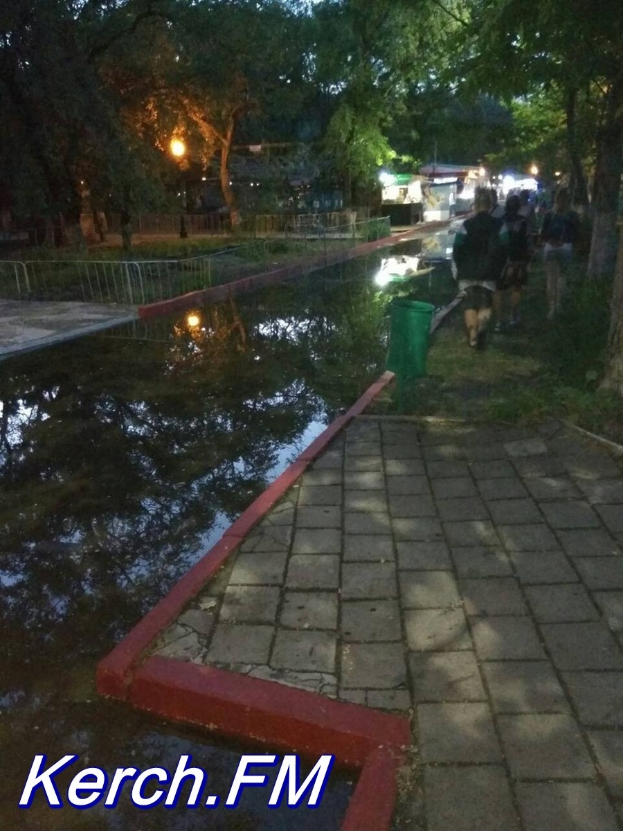 Дорожки на городской набережной Керчи были затоплены после дождя. Фото в Керчь.ФМ прислал наш постоянный читатель. Керчанин отметил, что дождь шел еще днем, к вечеру вода так и не уходила.