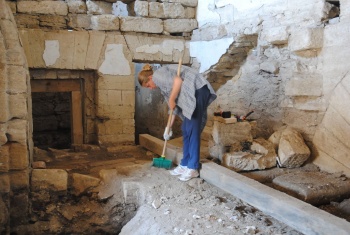 Участникам работ удалось добраться до первоначальных каменных полов сооружения. Для этого пришлось снять до двух метров шлака состоящего из слоев земли и спрессованных свиных экскрементов. В последние времена своего функционального существования в редюите располагалась свиноферма. Сделать это было очень не просто, так как все эти отложения спрессовались со временем в монолитную массу. Кроме этого все помещения и близлежащая территория была завалена огромными камнями.