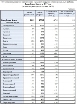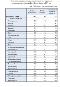 Что касается прироста населения, то во всех городах и районах отмечена убыль, кроме Симферопольского - 0, 3 на 1000 человек.