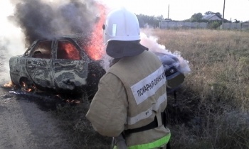 В Ленинском районе 31 июля вечером на пульт крымских спасателей поступила информация о возгорании легкового автомобиля в районе села Семеновка. По прибытии пожарных стало известно, что на автодороге «Щелкино - Ленино» произошла авария.