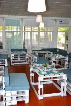 База отдыха "Свет Маяка" предлагает своим гостям качественное и разнообразное 3-х разовое комплексное питание в кафе, вместимость которого рассчитана на 150 человек.