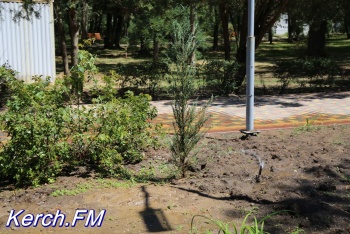 На клумбах появилась система орошения, которая также брызгает на асфальт. Непонятно одно - что поливают? Ведь цветов на некоторых клумбах, практически, нет.