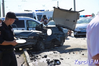 В Керчи 6 августа днем на Горьковскому мосту столкнулись четыре машины. В результате ДТП две машины вылетели на тротуар. Как передает журналист Керчь.ФМ с места событий, водитель «ВАЗа» - погиб. Также есть еще пострадавшие в других машинах.