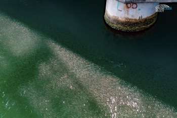 Как пишет ведомство, за стаями хамсы следуют морские и пернатые хищники, в том числе дельфины, рыба луфарь, а также чайки и бакланы. Ученые отмечают, что Крымский мост, в частности, помогает малькам уйти от погони: они прячутся в тени автодорожных и железнодорожных опор и пролетных строений.