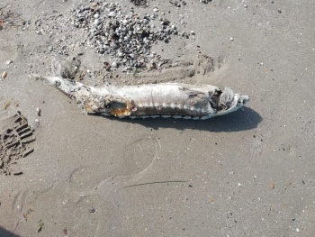 В районе от мыса Казантип до н.п. Щелкино сотрудники пограничной службы в Керчи выявили более 60 особей осетровых пород и два дельфина с признаками разложения. Разброс биоресурсов по береговой полосе составил около одного километра.