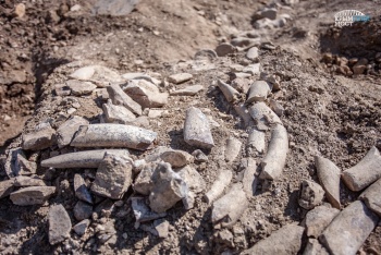 На Керченском полуострове ученые обнаружили окаменевшие костные останки млекопитающего, которые пролежали в геологических слоях около 10 миллионов лет. Фрагменты скелета - позвоночный столб и ребра - были найдены в ходе археологических исследований, предваряющих строительство железной дороги-подхода к Крымскому мосту. Только после того, как археологи заканчивают работу на очередном участке, он передается строителям для производства работ.
