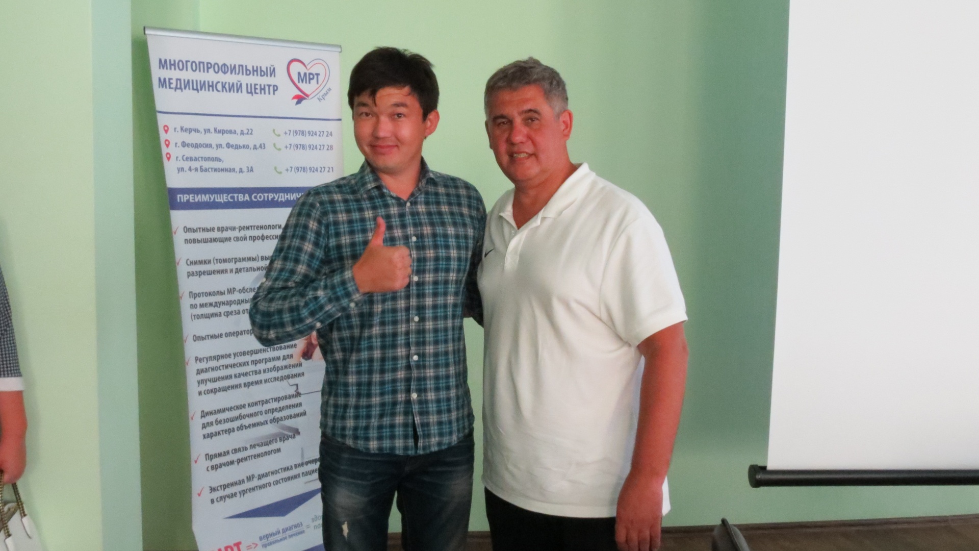 На встрече присутствовали генеральный директор и главный врач многопрофильного медицинского центра «МРТ Керчь» Сибогатов Альверт Васильевич и Никонорова Надежда Ивановна, врач-рентгенолог и врач травматолог-ортопед медицинского центра «МРТ Керчь» Исигильдинов Булат Булатович и Иноземцев Артем Валерьевич, а также врачи-нейрохирурги г. Керчи.