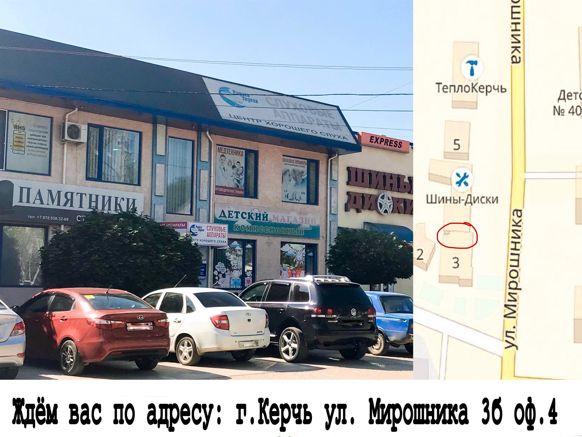 г. Керчь ул. Мирошника 3-Б, второй этаж, оф. 4 (рядом с магазином "Авто-дом")