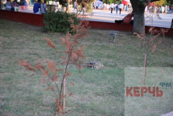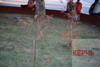 В Керчи, в сквере Афганцев засохли туи, которые высадили на клумбах. Как передаёт корреспондент Керчь.ФМ, засохли почти все молодые деревья, которые высадили здесь недавно.