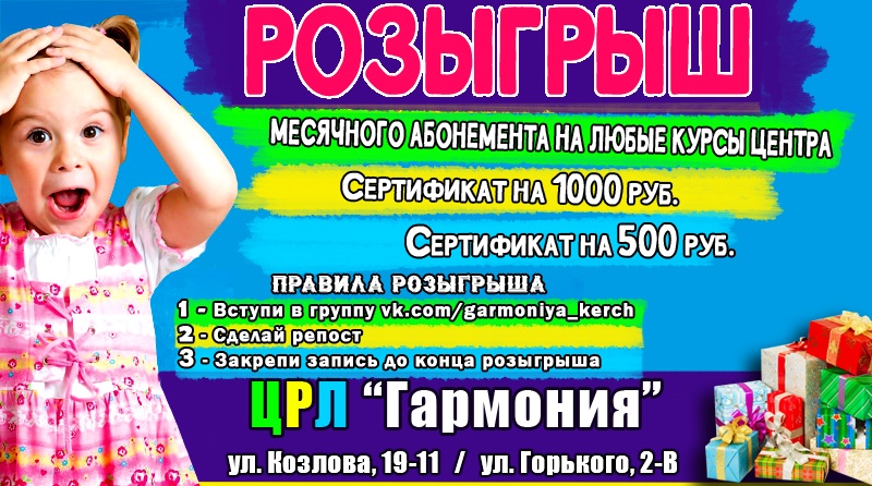 Узнавать больше интересной информации, а также, выиграть месяц бесплатных занятий Вы сможете, вступив в нашу группу https://vk.com/garmoniya_kerch