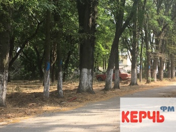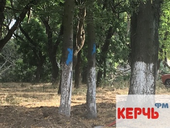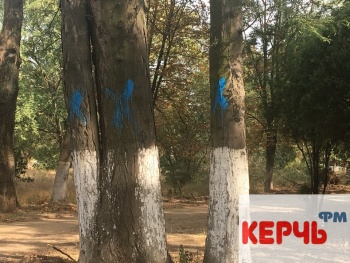 В Керчи 29 августа в Комсомольском парке пилят деревья. Рабочие уже спилили больше 10 деревьев. В планах еще более 10. Те деревья, которые спилят, помечены синей краской.