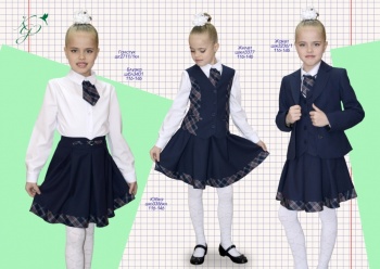 Для девочек - жакеты, жилеты, юбки, сарафаны, брюки, блузы, галстуки.