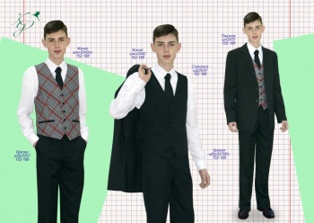Для мальчиков - пиджаки, жилеты, брюки, галстуки, сорочки белого и голубого цветов.