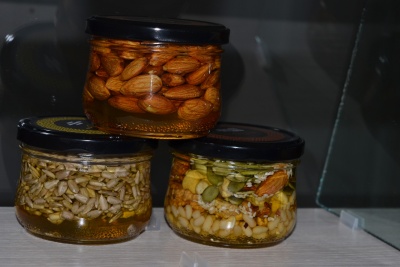Поступление меда 2018 года сбора: акациевый, барбарисовый, боярышниковый, валериановый, гречишный, донниковый, кипрейный, кориандровый, клеверный, лавандовый, липовый, майский, мятный, осотовый, пустырниковый, расторопшевый, разнотравье, сафлоровый, чабрецовый, чернокленовый, шалфейный, дикий, каштановый.