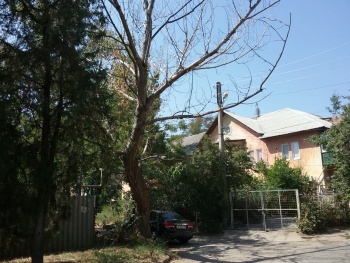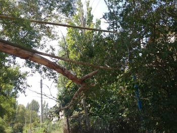Стоит отметить, что дерево засохло уже давно, рядом электропровода под напряжением и газовая труба.