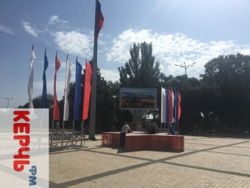 В Керчи 3 сентября на площади Ленина устанавливали трибуну со звездой. Также, рядом установили флаги. Звезду ставят в честь празднования 45-летия, как Керчи присвоили звание города-героя, - передает Керчь.ФМ